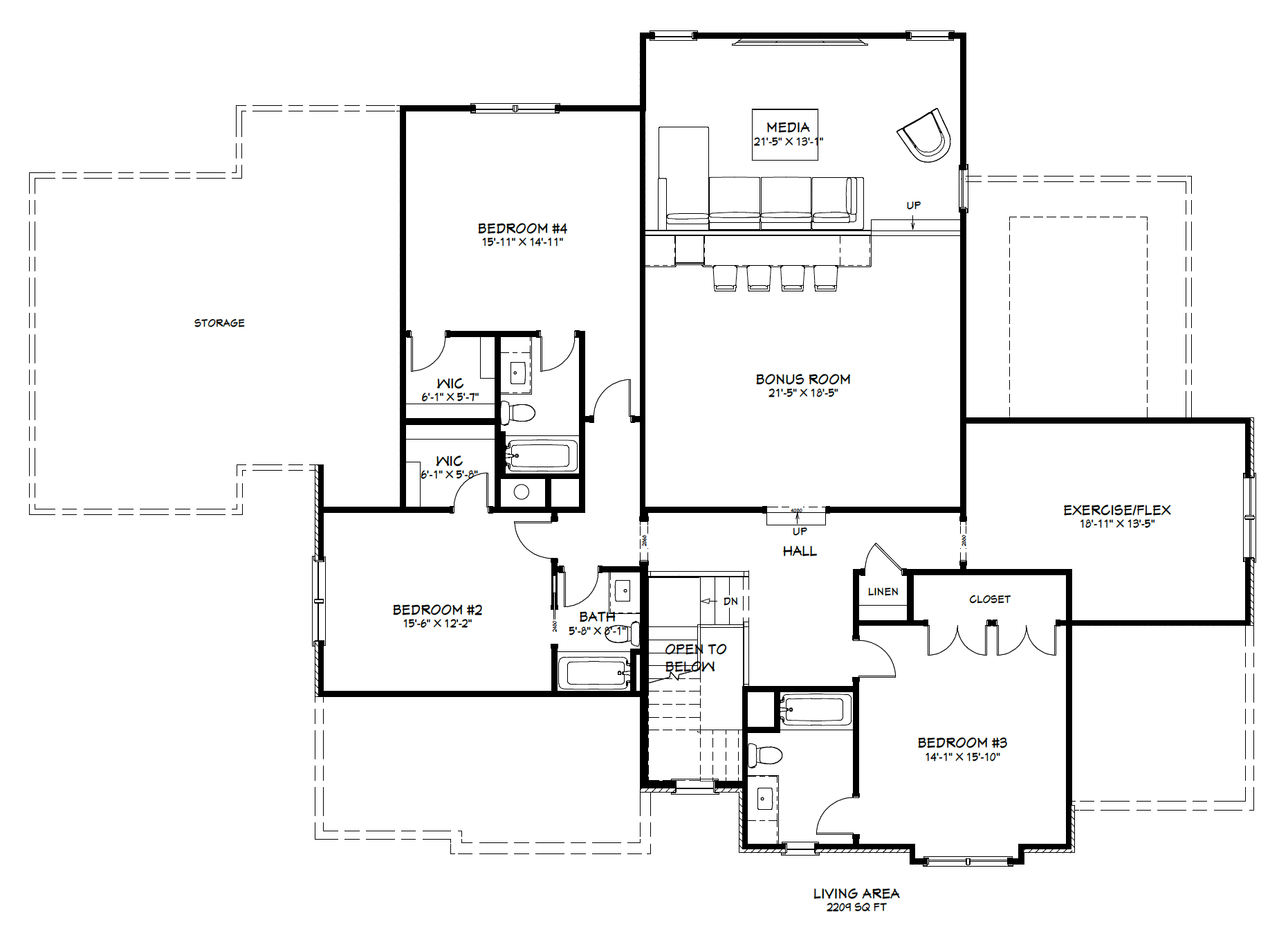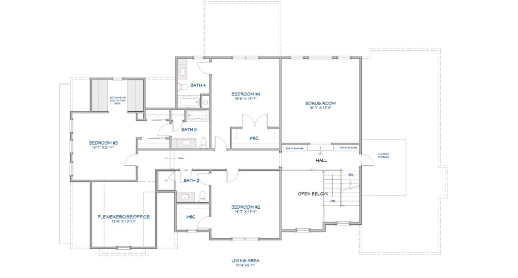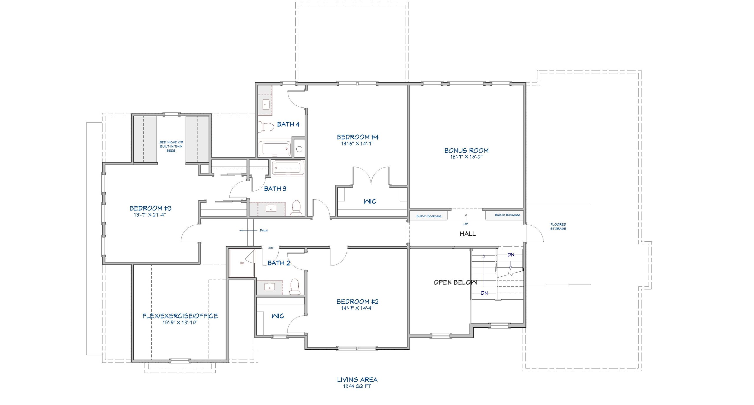 The upper floor is made to accommodate the modern growing family. Each bedroom has its own bath. Bedroom #3 is made as a bunk suite for that visiting family or a large family. The large bonus room and flex space allows you extra space and the opportunity to customize your home to your entertainment needs.