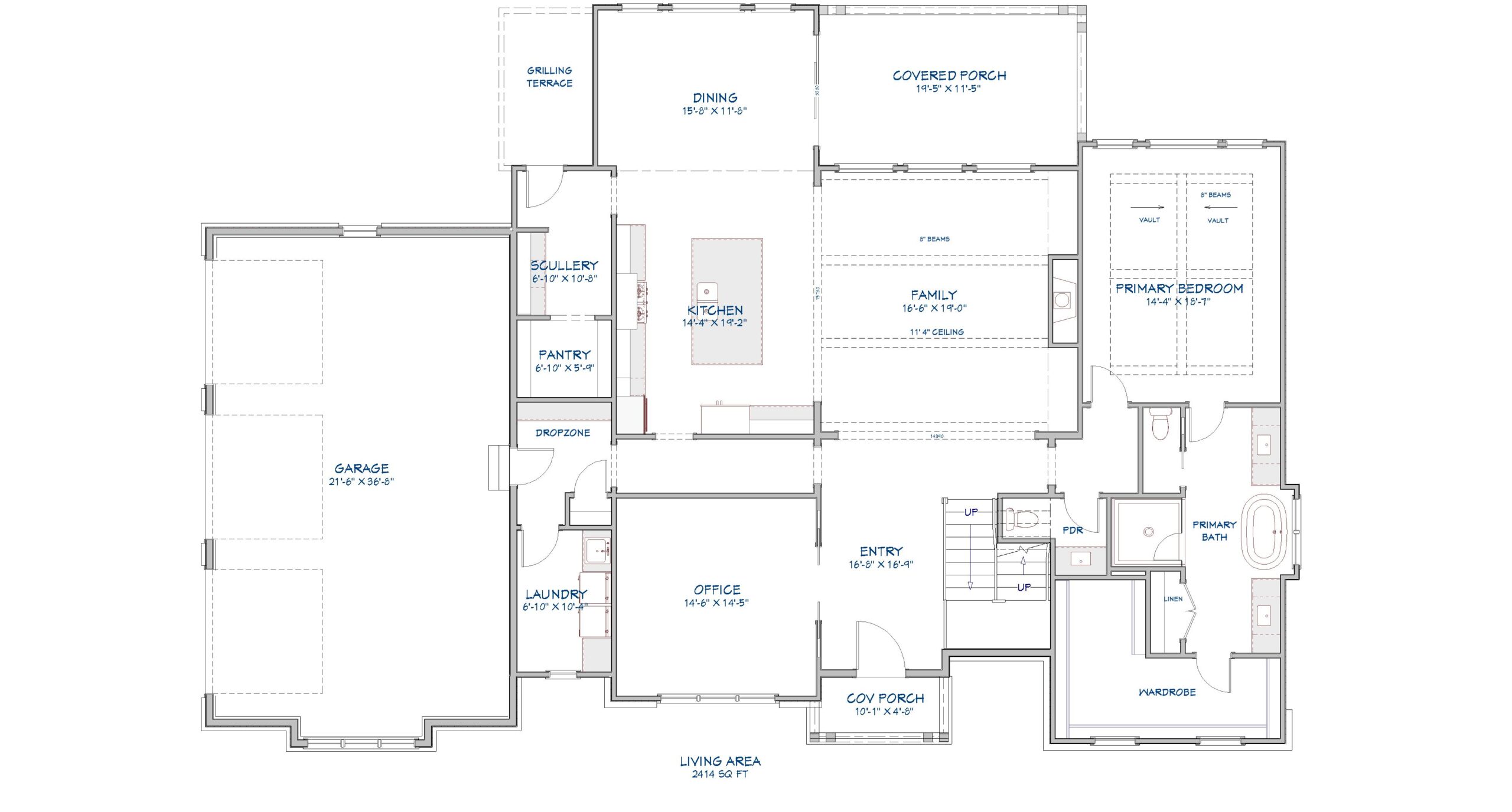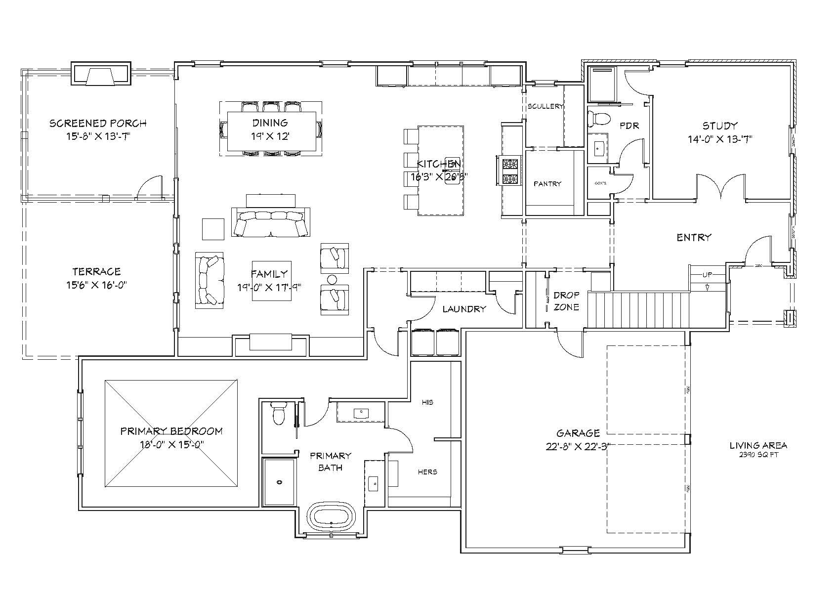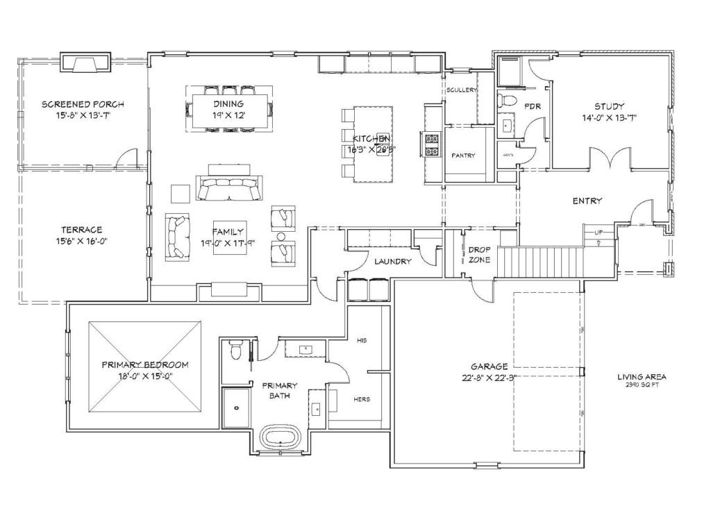The main floor is meant to feel large and open. The front entry welcomes you into a two-story area with a breathtaking staircase made of wrought iron newels and balusters and white oak handrail. The white oak is continued throughout in the extra wide hardwood floors. The kitchen is the hub of the downstairs as it overlooks the rear yard, dining, and family spaces. The chef of the family will enjoy the commercial appliances and the nearby scullery which spills out to a dedicated grilling terrace.